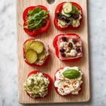 - Cucumber, Feta & Olives Tomato: Arrange thinly sliced 1/2 baby cucumber over the last tomato slice. Top with 1/2 tablespoon crumbly feta cheese and 3 sliced kalamata olives for a briny, tangy finish.