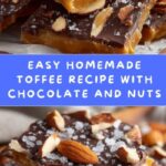 This Homemade Toffee recipe delivers a rich, buttery confection with a perfect balance of sweetness and a hint of saltiness. Topped with melted semi-sweet chocolate and crunchy nuts, this classic treat is made easily on the stovetop and ideal for gifting or enjoying as a delightful snack.