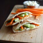 On one half of your hummus-and-feta-topped tortilla, place a small handful of thinly cut carrot and zucchini matchsticks. The fresh crunch and color turn each bite into a delightful experience.