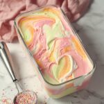 Transfer your mixture to an airtight container and freeze for at least 2 hours. This last step gives your sherbet ice cream that satisfyingly firm texture while keeping all those brilliant flavors bursting through. When it’s ready, your Jello Rainbow Sherbet Ice Cream Recipe is all set to light up your dessert table.