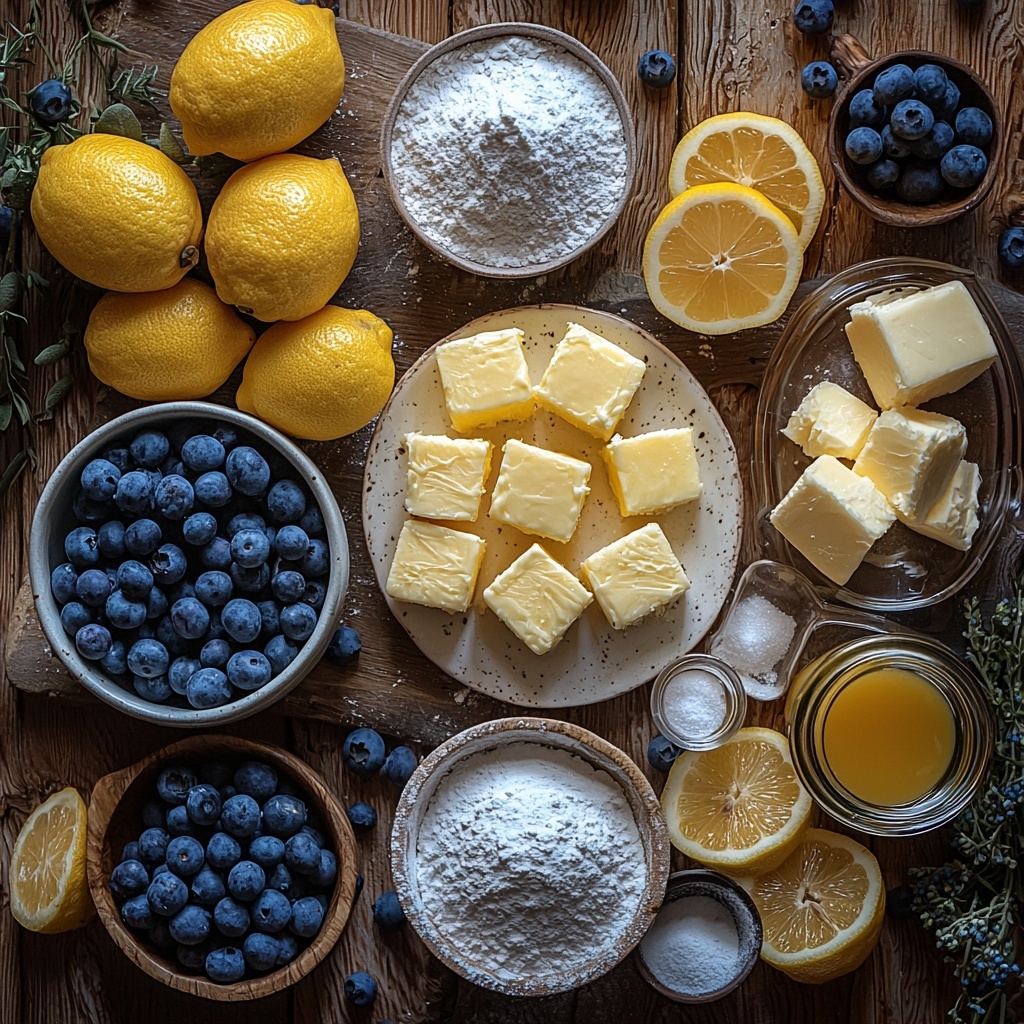 Every ingredient in this recipe is straightforward but plays a starring role in achieving the perfect balance of flavor, texture, and color in your Lemon Blueberry Shortbread Mousse Cake Recipe. Each component works together to build layers of buttery, creamy, and fruity delight.