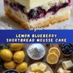 This Lemon Blueberry Shortbread Mousse Cake features a buttery shortbread crust layered with a tangy lemon mousse, topped with a rich blueberry compote. Perfectly balanced sweetness and citrus flavor make it an elegant, refreshing dessert for any occasion.