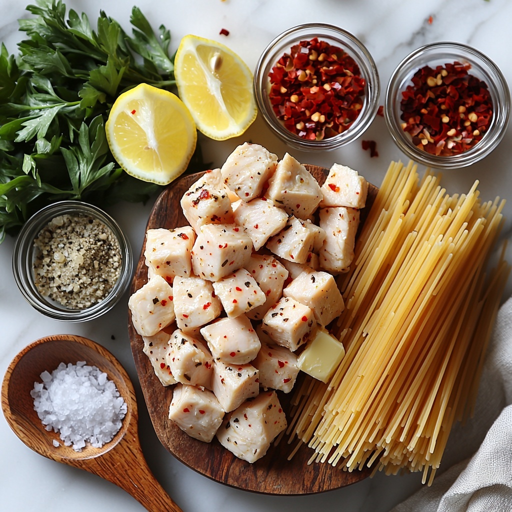 These ingredients are simple but essential, each playing a crucial role in bringing this Lemon Garlic Butter Chicken Bites with Savory Parmesan Linguine Recipe to life. You’ll find fresh herbs and lemons brighten the dish, while garlic and Parmesan lend an irresistible, savory depth.