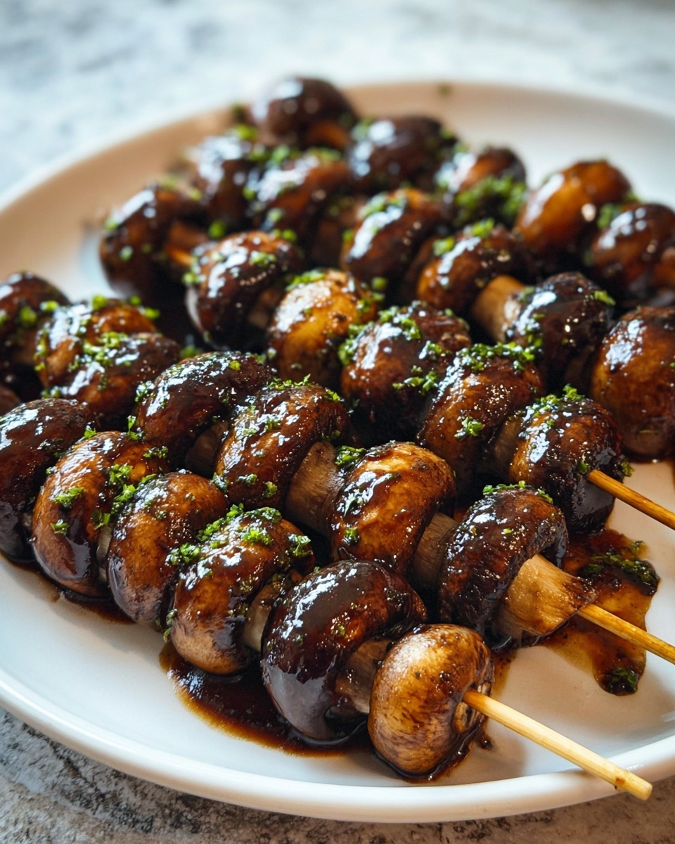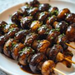 These Marinated Grilled Mushroom Skewers are a flavorful, smoky, and juicy vegetarian appetizer or side dish that’s perfect for summer barbecues and gatherings. The mushrooms are marinated in a savory blend of olive oil, soy sauce, balsamic vinegar, and herbs, then grilled to perfection for a tender bite with a delightful charred flavor.