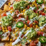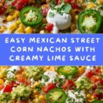 These Mexican Street Corn Nachos combine crispy tortilla chips with charred sweet corn, melted Monterey Jack cheese, and a zesty, creamy lime crema. Topped with crumbly cotija cheese, fresh cilantro, jalapeño slices, and a sprinkle of TajÃn seasoning, this flavorful appetizer delivers a delightful mix of smoky, tangy, and spicy tastes perfect for sharing.