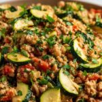 This Mexican Zucchini and Ground Beef Skillet is a flavorful and hearty one-pan meal perfect for a quick weeknight dinner. Ground beef is browned and combined with sautéed zucchinis, onions, garlic, diced tomatoes, and salsa seasoned with chili powder, cumin, and paprika. Topped with melted cheddar cheese and fresh herbs, this dish delivers a savory Mexican-inspired taste that’s both comforting and nutritious.