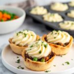 Serve these mini shepherd’s pies with a crisp green salad, roasted vegetables, or even a tangy coleslaw for a balanced meal. The freshness of sides complements the richness of the pies perfectly, creating a satisfying and complete plate.