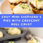 These Mini Shepherd’s Pies are a delightful twist on the classic comfort food, perfect for parties or family dinners. Ground beef and mixed vegetables are seasoned and nestled into crescent roll dough cups, then topped with creamy mashed potatoes and baked until golden brown. Each bite offers a savory blend of flavors with a flaky crust and a creamy topping.