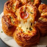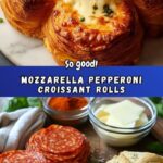 Serve the Mozzarella Pepperoni Croissant Rolls Recipe on a rustic wooden board with a variety of dipping sauces like garlic aioli, spicy marinara, or a creamy ranch dip. For a party or game day, arrange them around a bowl of sauce in the center for an inviting, finger-food style presentation that everyone will love.