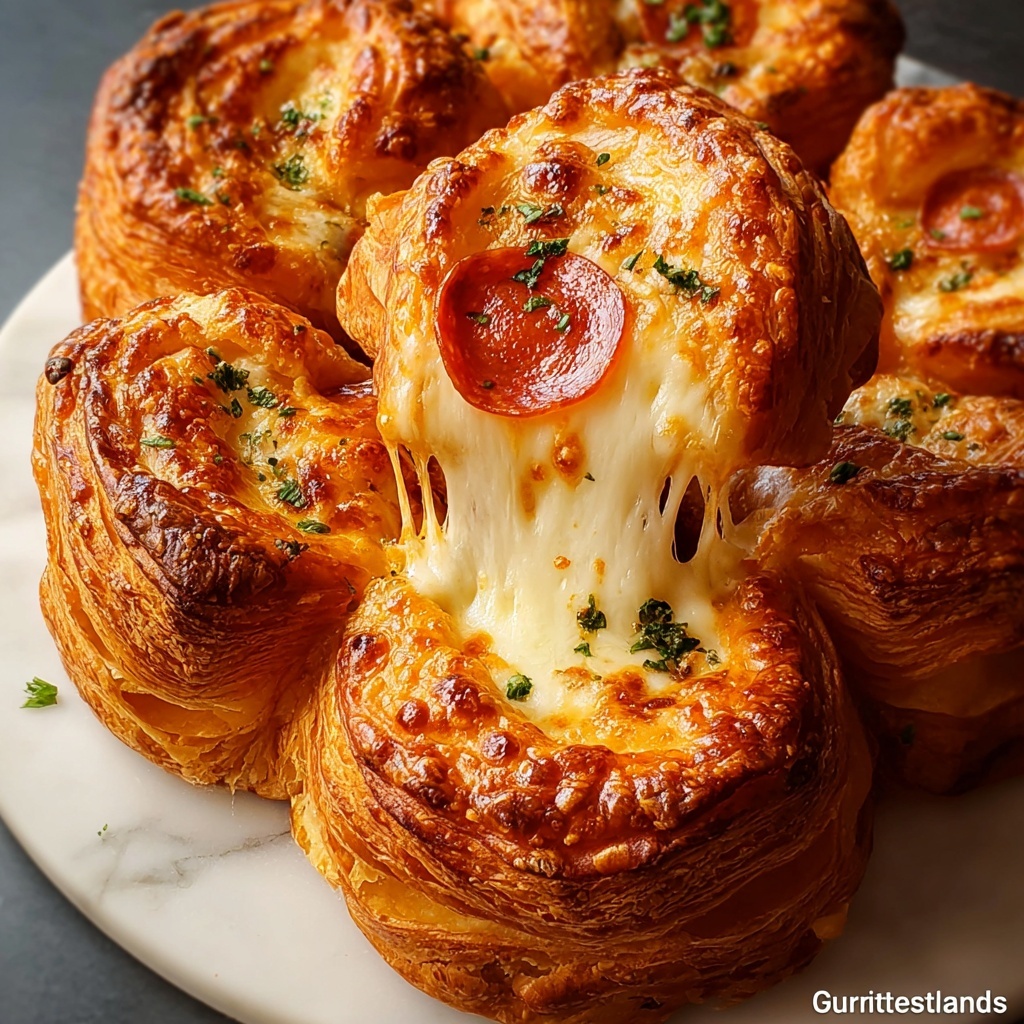 These Mozzarella Pepperoni Croissant Rolls are a quick and delicious snack perfect for gatherings or a savory treat. Flaky croissant dough is brushed with a flavorful garlic and herb butter, then stuffed with melty mozzarella cheese and spicy pepperoni. Baked to golden perfection, these rolls combine gooey cheese and zesty pepperoni inside a tender, buttery crust.