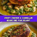 This one-pan crispy chicken with cannellini beans and pistachio pesto is a flavorful Mediterranean-inspired main course. Tender bone-in, skin-on chicken thighs are seasoned and seared to golden perfection, then roasted alongside creamy cannellini beans infused with lemon and chicken broth. Topped with a fresh, vibrant pistachio pesto, this dish combines crisp textures, savory flavors, and wholesome ingredients for an impressive yet easy weeknight dinner.