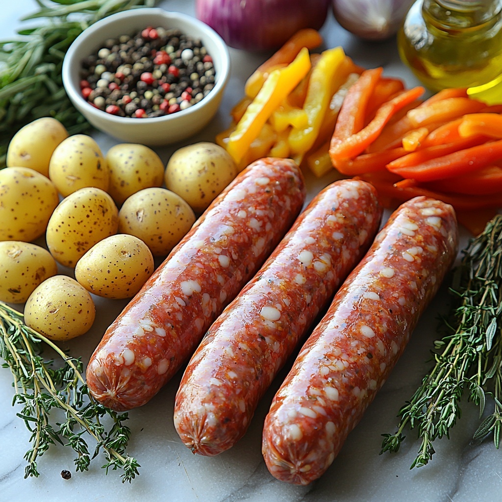 This One-Pan Roasted Sausages with Peppers & Potatoes recipe is a hearty, flavorful meal perfect for busy weeknights or casual weekend dinners. Juicy sausages roast alongside tender baby potatoes, sweet bell peppers, and savory onions, all enhanced by fragrant garlic and fresh herbs. The all-in-one roasting method makes cleanup a breeze while delivering a satisfying, comforting dish.