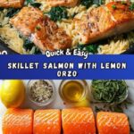 This One Skillet Salmon with Lemon Orzo is a delicious, quick, and easy meal perfect for busy weeknights. Tender salmon fillets are seared to golden perfection, then combined with creamy, lemony orzo pasta and fresh baby spinach, all cooked together in a single skillet for minimal cleanup and maximum flavor.