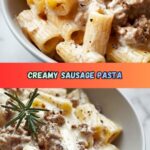 Reduce the heat slightly and stir in the heavy cream. Bring the mixture to a gentle simmer, letting the sauce thicken for 3 to 5 minutes. This slow simmer melds the sausage’s savory depth with the creamy richness, creating a luscious coating perfect for the pasta to absorb.