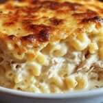 This comforting chicken casserole recipe by Paula Deen combines tender shredded chicken, creamy soups, sour cream, and mayonnaise with egg noodles and cheddar cheese. Topped with a buttery cornflake crust, it’s a quick and easy dish perfect for family dinners that delivers rich flavors and hearty satisfaction.