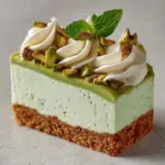 Slice the cheesecake into generous wedges and serve them on elegant dessert plates, garnished with edible flowers or thinly sliced almonds for an elegant look. For a party, serve mini versions in small glasses layered with crushed almond crust and whipped cream for a playful, deconstructed take on the Pistachio Cheesecake with Almond Crust Recipe.