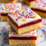 These Poptart Cookie Bars are a delightful twist on the classic poptart, featuring a buttery cookie crust layered with sweet strawberry preserves and finished with a smooth vanilla glaze and colorful sprinkles. Perfectly baked to a golden brown, these bars combine crunchy edges and a soft center for a nostalgic treat that’s easy to make and share.