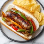 This Sausage, Peppers, and Onions recipe is a classic Italian-American dish featuring savory Italian sausage cooked with colorful bell peppers, onions, and aromatic herbs. Perfectly browned and combined with tender vegetables, this hearty sandwich filling offers a delicious and satisfying meal served on toasted hoagie rolls.