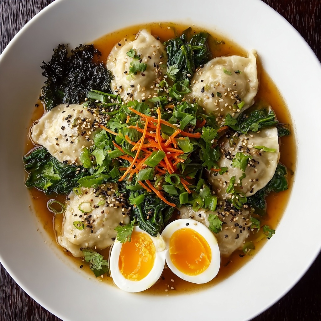Savory Dumpling Ramen Bowl with Soft-Boiled Eggs and Fresh Greens Recipe