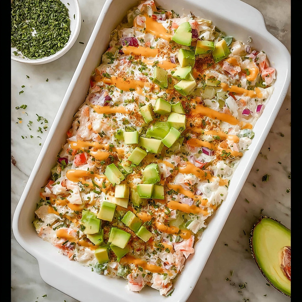 This Shrimp and Crab Sushi Bake is a delicious, warm twist on traditional sushi. Featuring layers of perfectly cooked sushi rice topped with a creamy, spicy mixture of imitation crab, cooked shrimp, Japanese mayonnaise, cream cheese, and furikake seasoning, it’s baked to perfection and garnished with fresh cucumber, avocado, and classic sushi accompaniments. Ideal for sushi lovers who want an easy, crowd-pleasing dish that combines rich flavors with simple preparation.