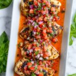This Simple Bruschetta Chicken recipe features tender grilled or baked chicken breasts topped with a fresh, vibrant bruschetta mixture of diced tomatoes, basil, garlic, and balsamic vinegar. Easy to prepare and bursting with Italian-inspired flavors, this dish makes a perfect weeknight dinner or a flavorful option for entertaining.