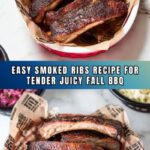 Once cooked, remove the ribs from the smoker and let them rest on a wooden board for 10 minutes. Resting redistributes the juices and locks in flavor. Slice between each bone, cutting from left to right, and get ready to enjoy some mouthwatering ribs. A drizzle of your favorite BBQ sauce is optional but highly recommended for an extra layer of yum.