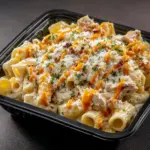 This Smoked Buffalo Chicken Pasta is a flavorful and creamy dish combining smoky shredded chicken with spicy Buffalo wing sauce, ranch dressing, and melted cheddar cheese. Paired with tender penne pasta and topped with crumbled blue cheese and fresh green onions, it’s a rich and comforting American main course perfect for a hearty meal.