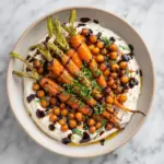 This Spicy Maple Roast Carrots with Crispy Chickpeas and Yogurt Sauce recipe offers a flavorful Mediterranean-inspired side dish featuring caramelized carrots, crunchy roasted chickpeas, and a tangy yogurt sauce. It’s an easy, wholesome, and vibrant dish perfect as a side or appetizer.