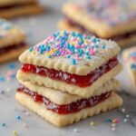 These Strawberry Pop Tart Sugar Cookies are a delightful twist on classic sugar cookies, filled with sweet strawberry jam and topped with colorful sprinkles. Perfectly soft and buttery with a jammy center, they bring the nostalgic flavor of pop tarts in a homemade cookie form that’s ideal for any occasion.