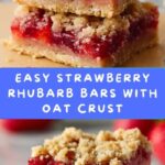 Deliciously tangy and sweet Strawberry Rhubarb Bars featuring a crumbly oat crust and topping with a juicy strawberry and rhubarb filling, perfect for a summery dessert or snack.