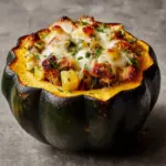 For a festive touch, serve the stuffed squash halves on a rustic wooden platter or nestle them in a bed of fresh kale or mixed greens. You can also cut the stuffed halves into wedges for an elegant plated presentation or a family-style dinner that’s fun to share.