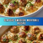 This classic Swedish Meatball recipe features tender meatballs made from a blend of ground beef and pork, seasoned with allspice and nutmeg, then pan-fried to golden perfection. They’re served in a rich and creamy sauce made with beef broth, heavy cream, and Dijon mustard, perfect for pairing with mashed potatoes or egg noodles for a comforting and authentic meal.
