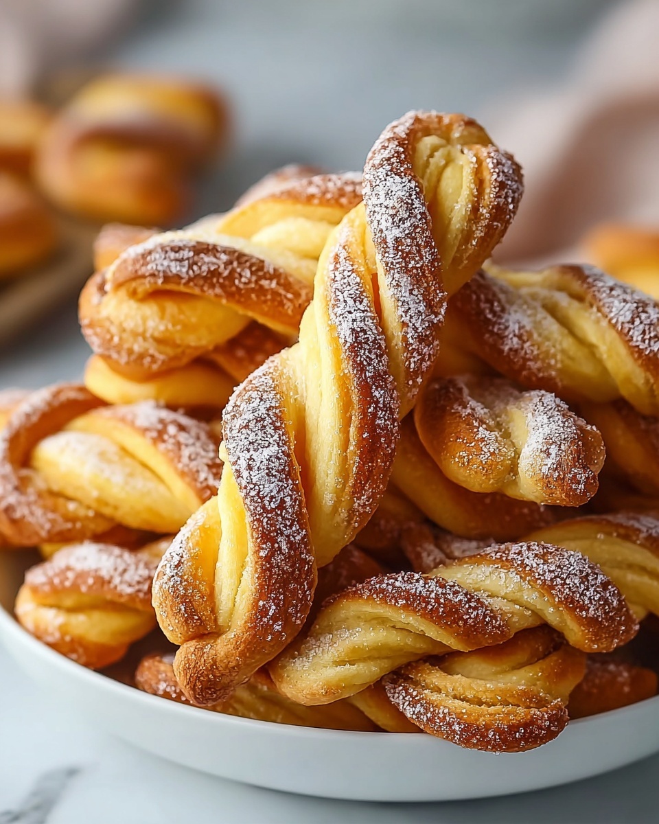 Arrange the twists on a rustic wooden board or in a pretty basket lined with a linen cloth for a warm, inviting presentation. You can also skewer a few twists together to create a fun, shareable dessert skewer at parties or family gatherings.