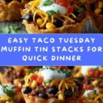 These Taco Tuesday Muffin Tin Stacks are a fun and creative twist on traditional tacos, layered in a muffin tin for easy serving. Ground beef or turkey is seasoned and combined with black beans, corn, and cheese, then baked until bubbly and delicious. Perfect for a family meal or party appetizer, topped with sour cream, salsa, and cilantro for extra flavor.