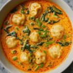 A flavorful Thai Red Curry Dumpling Soup that combines aromatic spices, creamy coconut milk, and tender dumplings for a comforting and easy-to-make meal perfect for any day of the week.