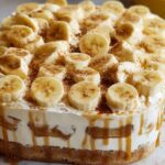 A creamy and delightful layered banana pudding dessert featuring vanilla wafers, sliced bananas, and a luscious pudding and cream cheese mixture, perfect for parties or family gatherings.