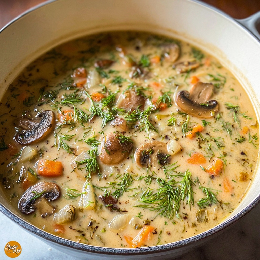 This rich and creamy mushroom soup is a comforting blend of sautéed mushrooms, onions, carrots, and tender potatoes, brought together with cream cheese, sour cream, and heavy cream. Enhanced with the savory flavors of chicken and mushroom bouillon, and fresh dill, it’s a perfect hearty meal for mushroom lovers, ready in just 35 minutes.