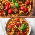This Tomato Orzo with Chicken Sausage recipe is a hearty and flavorful one-pan dish that’s perfect for a quick weeknight dinner. Tender orzo pasta is simmered with diced tomatoes, aromatic garlic and onions, and seasoned with oregano and red pepper flakes. Sliced chicken sausage adds a savory protein boost, while grated Parmesan cheese and fresh basil bring rich, fresh finishes to every bite.