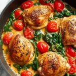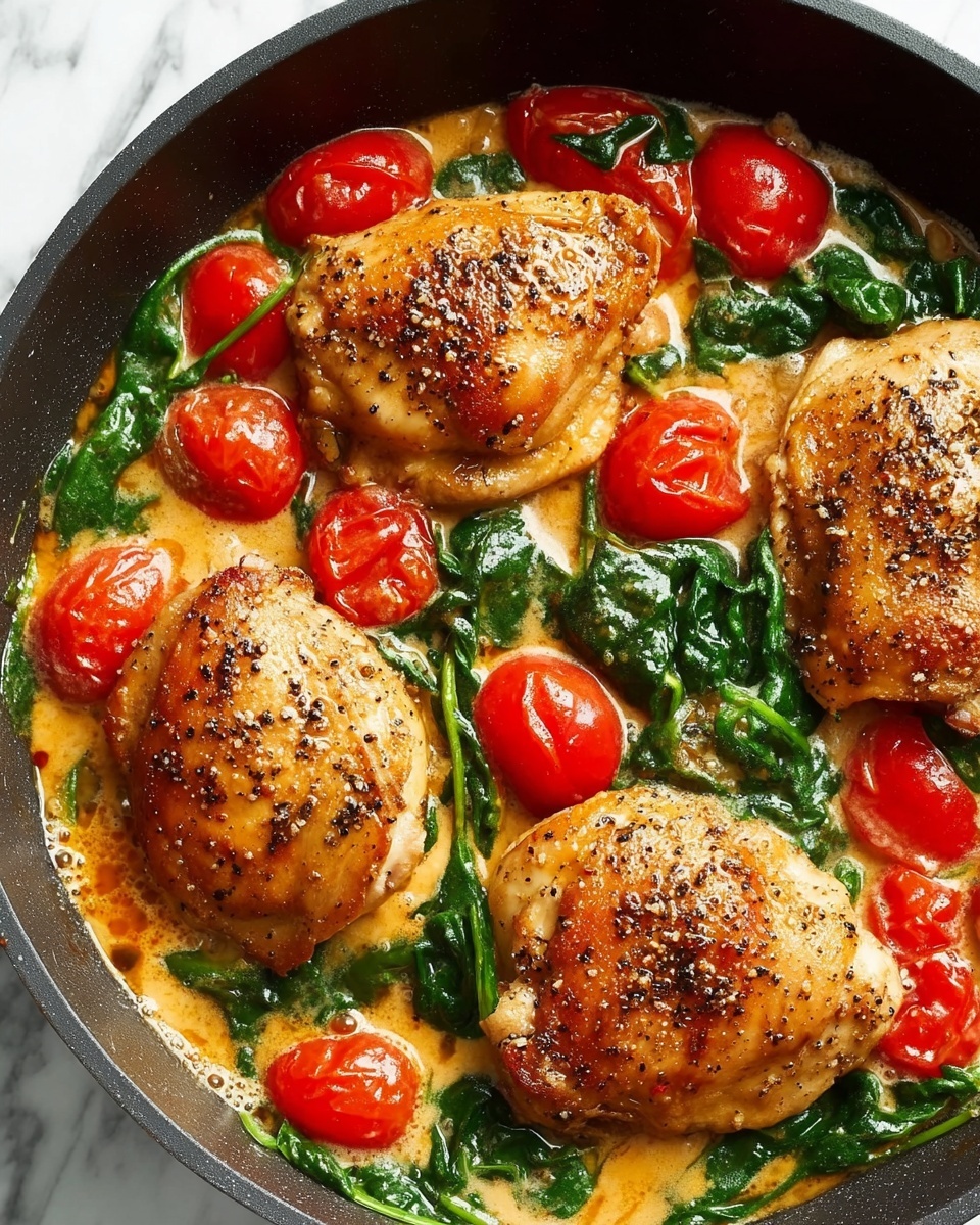 For a fun twist, serve the chicken over a bed of buttery polenta or alongside buttered pasta tossed with fresh herbs. Plating the colorful tomatoes and spinach prominently really brings this dish to life visually, turning a simple dinner into an elegant experience. Family style serving can also encourage everyone to dig in and enjoy the rustic charm of this recipe together.