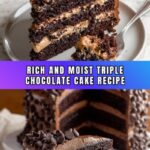 This decadent Triple Chocolate Cake recipe features a rich, moist chocolate cake layered with creamy cocoa frosting and topped with a shiny chocolate ganache. Perfect for chocolate lovers, this dessert combines three types of chocolate in one luscious cake with a balance of fluffy texture and intense chocolate flavor.