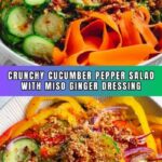 This Viral Cucumber Pepper Salad is a vibrant, crunchy, and flavorful dish featuring Persian cucumbers, mini sweet bell peppers, carrots, and shallots tossed in a zesty Asian miso ginger dressing, enhanced with chili crunch oil and everything bagel seasoning. Perfect as a refreshing side or light lunch, this no-cook salad is quick to prepare and delivers a delightful balance of textures and flavors.